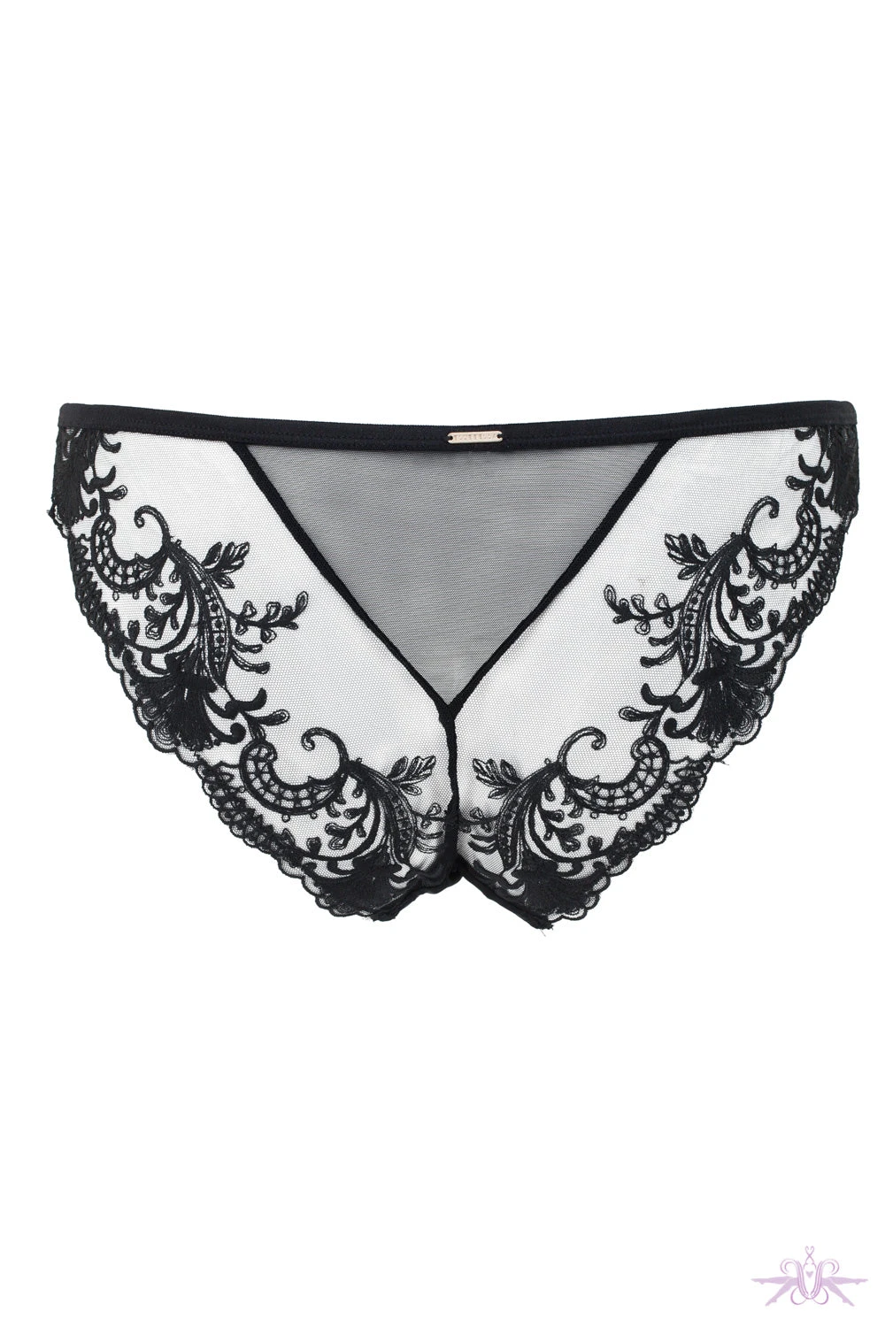 Beautifully delicate brief of superfine embroidered mesh. Floral-inspired designs swirl along the front top line and the back sections of the brief, adding movement and flattering definition. A central panel of plain mesh in the back section of the brief creates shape, whilst the slim banding for the waistband adds a provocative touch, highlighting the hip bones. Wear with the matching Marseille Garter Belt for a stunning complete look.