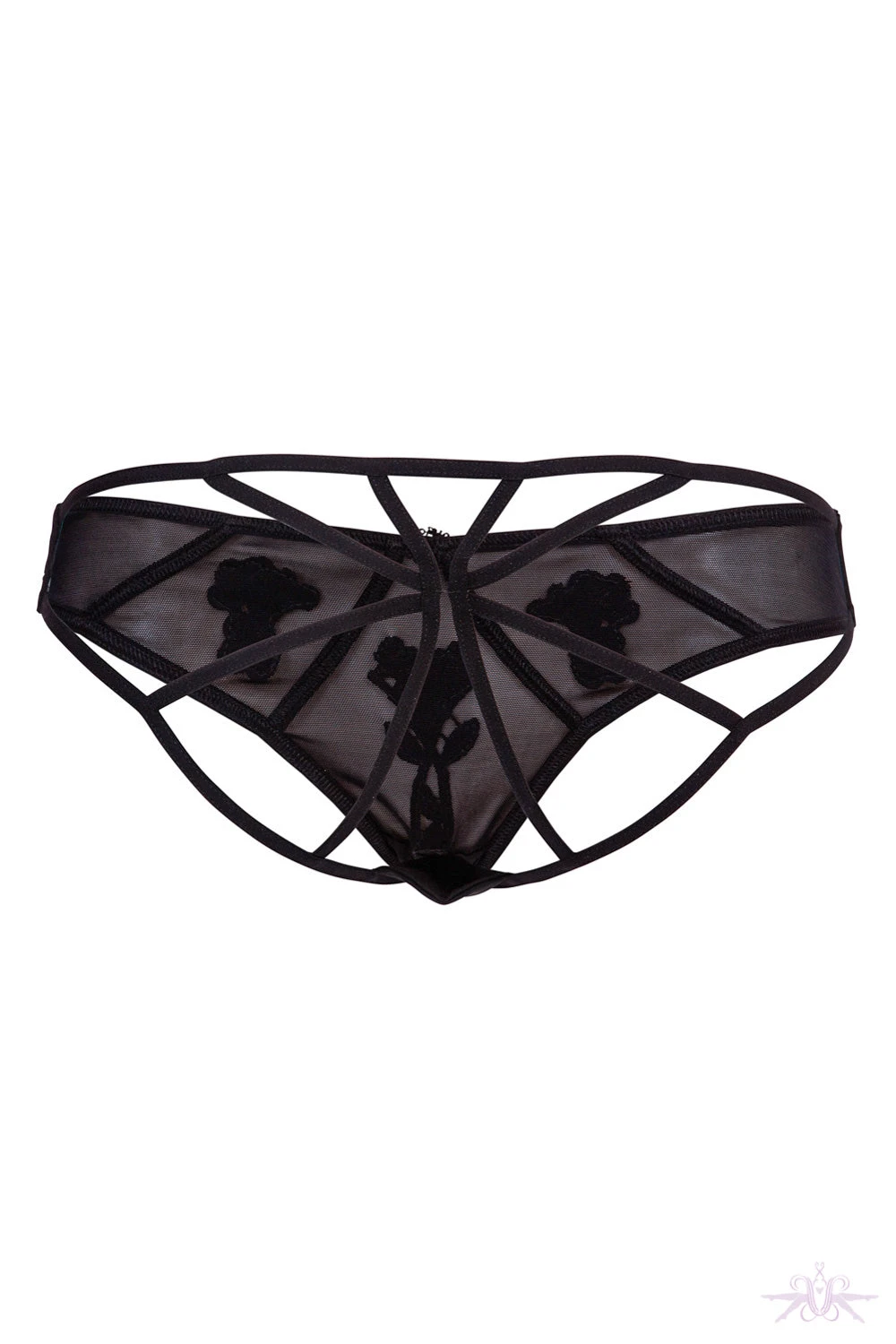 A delicate cut out guipure lace brief from the Nova collection at Bluebella. Featuring a semi open back with elasticated strap details and gold Bluebella tag on the waistband to the rear. Wear with the matching Nova suspender belt and nova bra for a luxurious lingerie look.