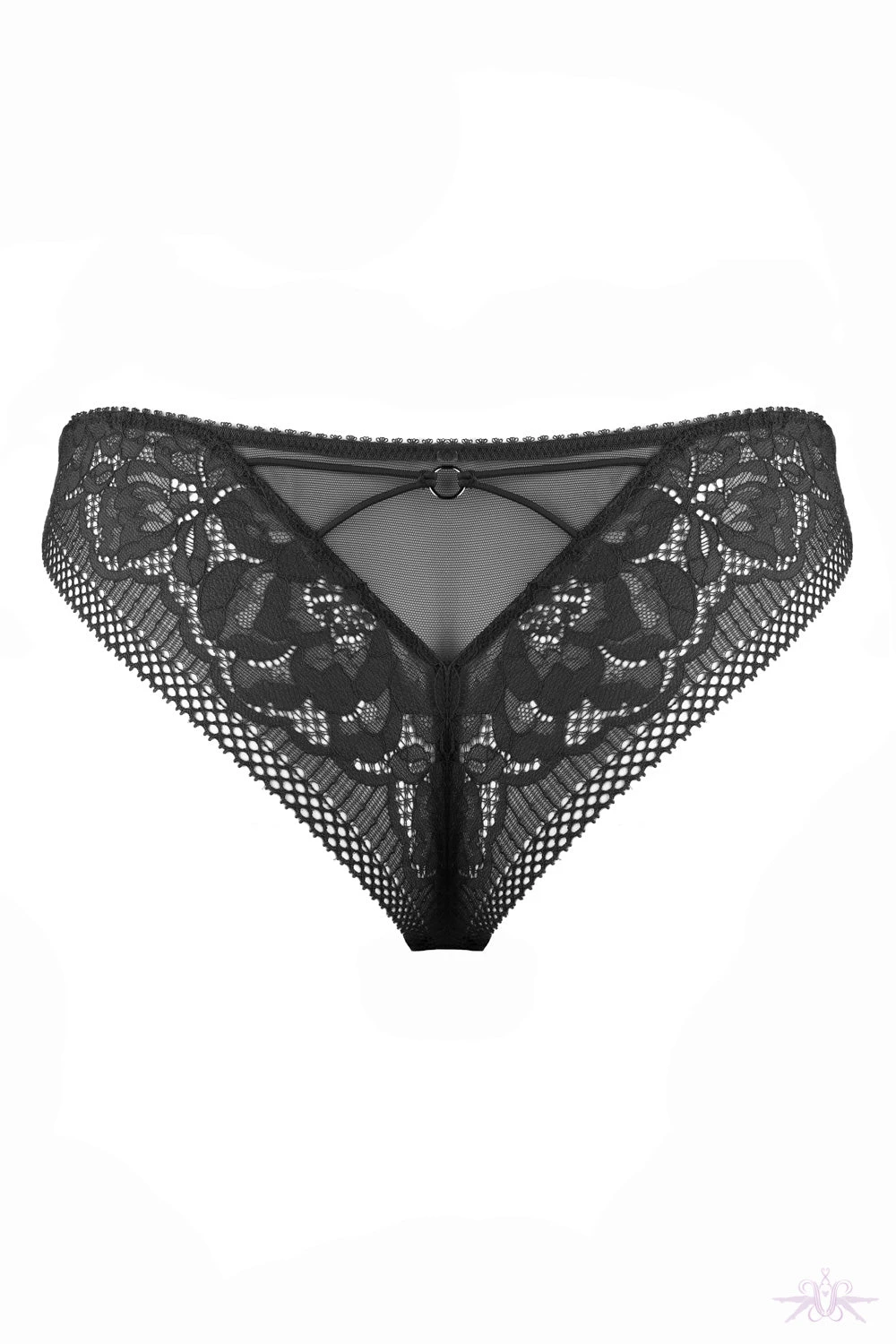 A seductive brazilian knicker from the Rock DJ collection at Jolidon. This sheer lace braziian is delicate and alluring with its sheer lace mesh and tulle panelling. The v-shape on the rear enhances the derriere beautifully. Matching items are also available.