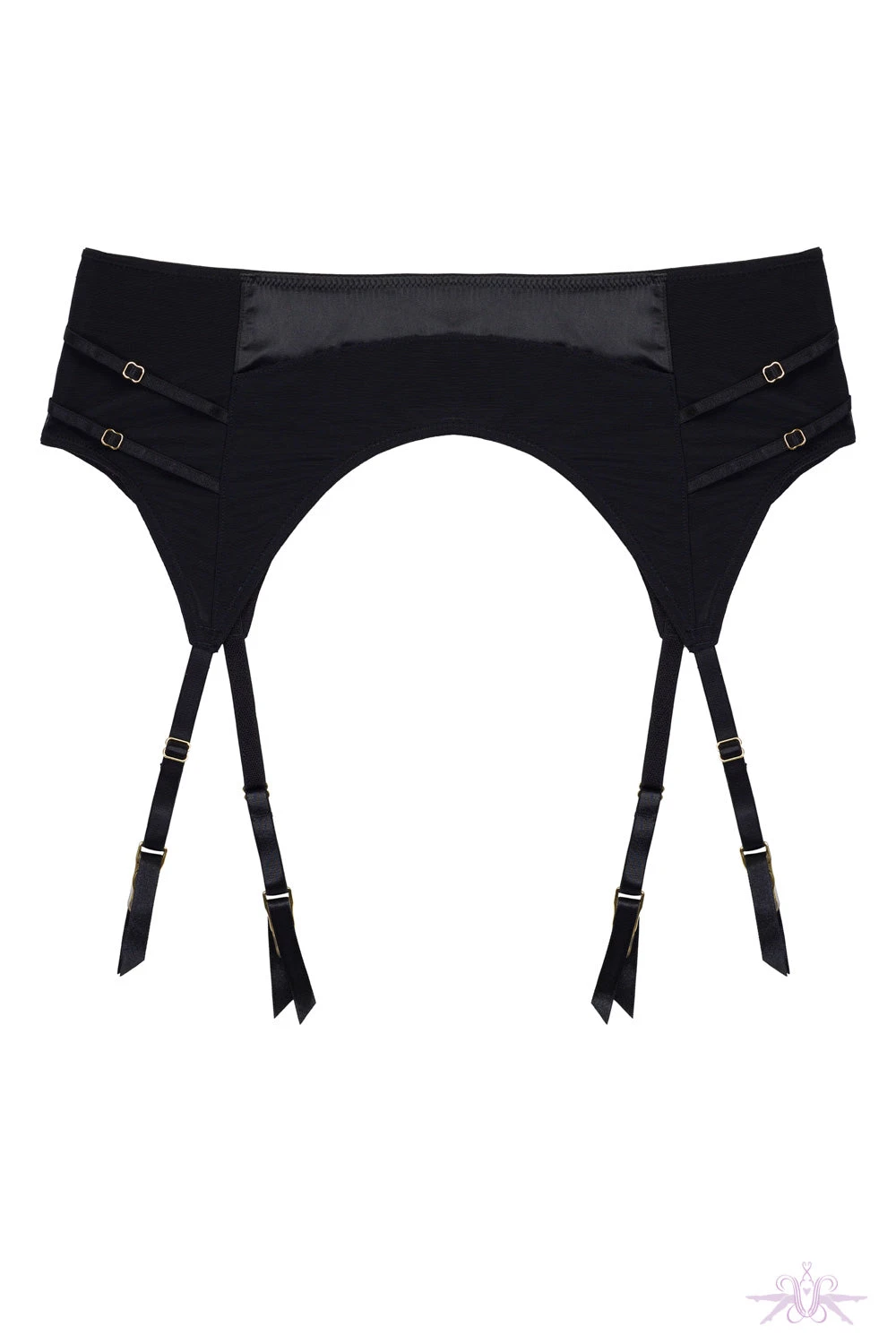 Simple, sophisticated, but highly erotic, the Charlie suspender in sleek black satin features a centre panel for contoured effect and gold hardware detailing. This set is definitely a boudoir essential. Matching items available to complete the set.